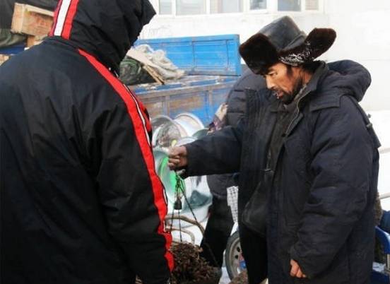 新鲜蔬菜因为怕冻可不能摆在零下二十几度的露天卖,机智的本溪人就用塑料围起了一个暖棚来抵御寒风。尤其记得卖茧蛹的,在暖棚里点一盏灯,码得齐刷刷的茧蛹就在灯光下摇头晃脑的,嗷嗷有意思~
