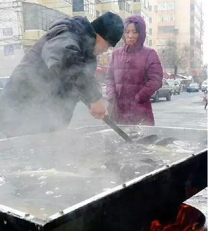 这几天东北太冷了,有的卖鱼人竟然支起大锅将“活鱼加热卖”。