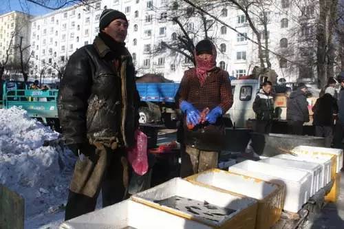 本溪早市也有鲜鱼哦,但是已经看不到它那活蹦乱跳的模样,一般都静悄悄浮在有冰碴子的水里。