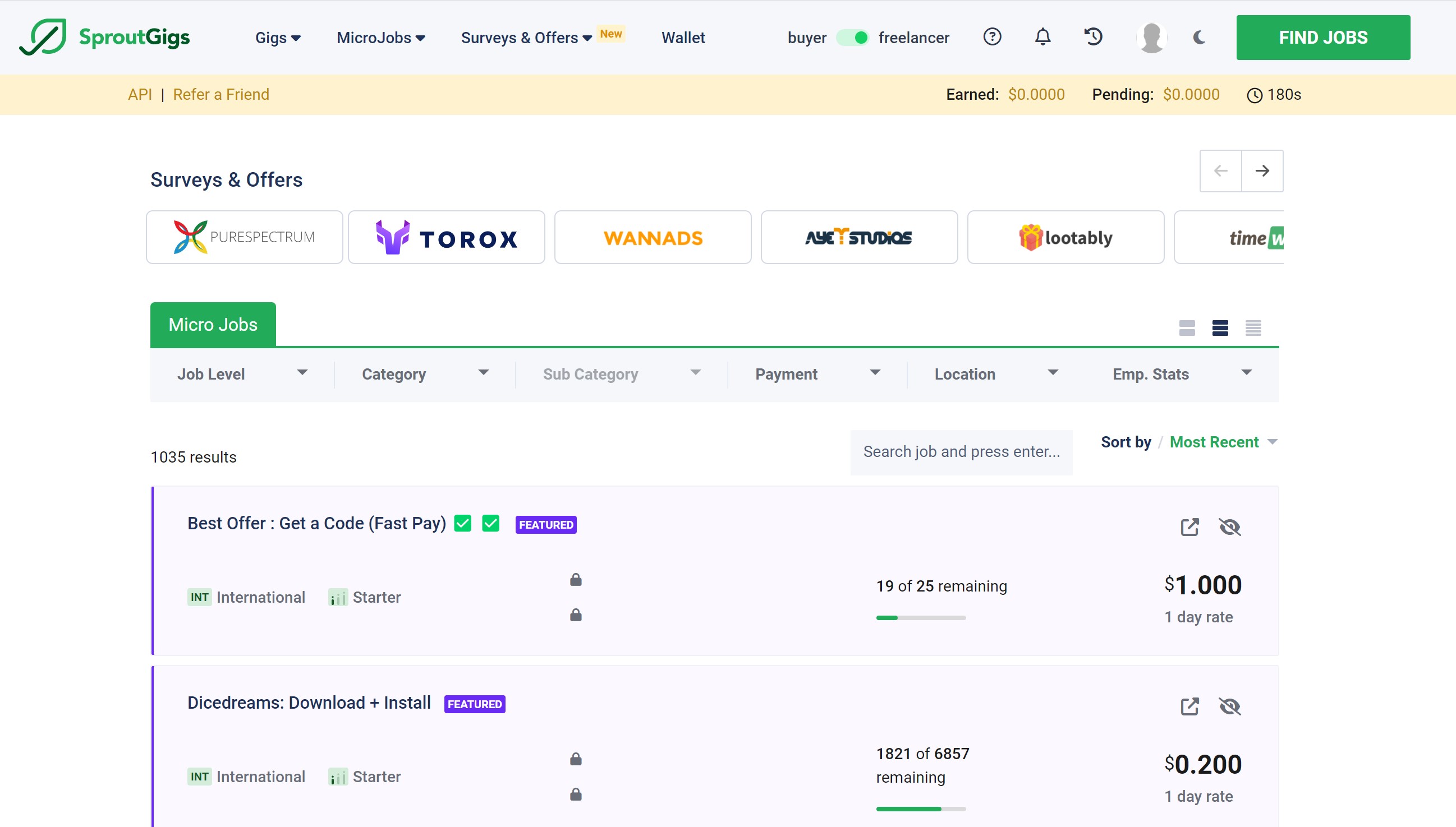 工作区有一个MicroJob的标签,是小型任务的意思。这是SproutGig独有的任务类型。