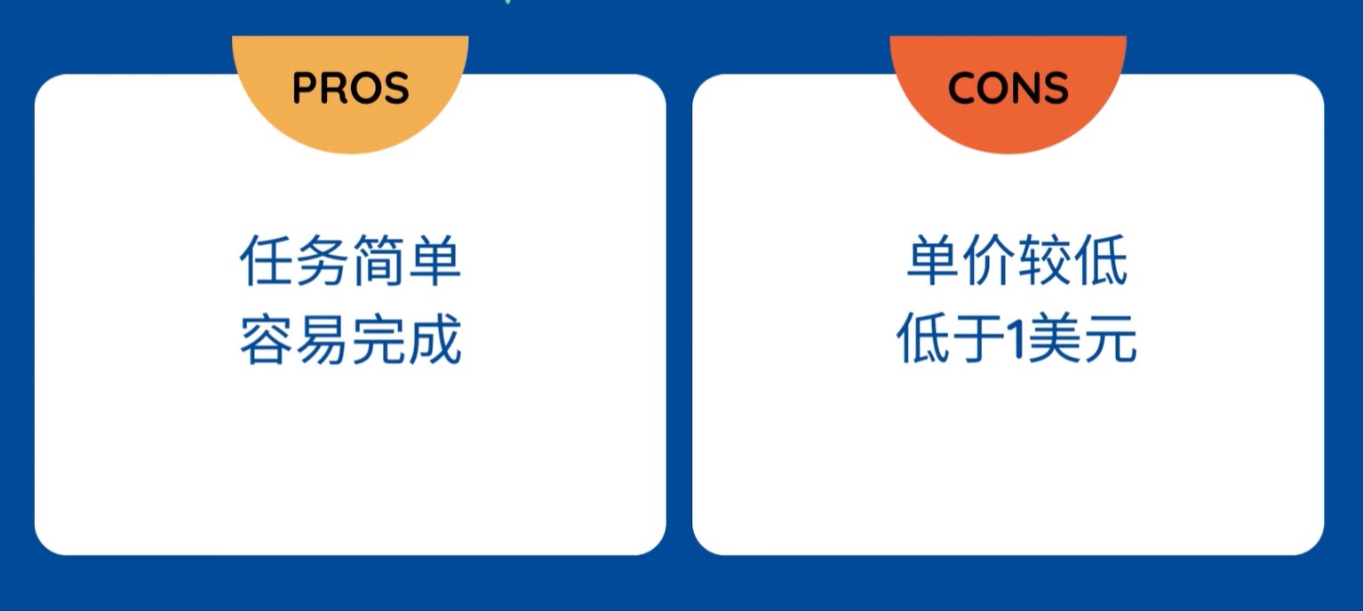 这类任务有个明显的优点,就是操作简单,几分钟就能完成一个,缺点是单价不高,通常在0.1-1美元之间。