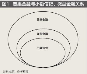 与其他金融相比,普惠金融具有三大特点:一是服务对象更为广泛,中低收入阶层、规模较小的民营企业、贫困和偏远地区人群等均包含在内;二是服务提供机构更多,包括银行业金融机构、非银行金融机构、互联网金融企业、社会非政府组织等机构;三是总体客户量大、单笔业务规模小,有明显的群聚效应,可视作为小额信贷和微型金融的延伸发展(见图1)。