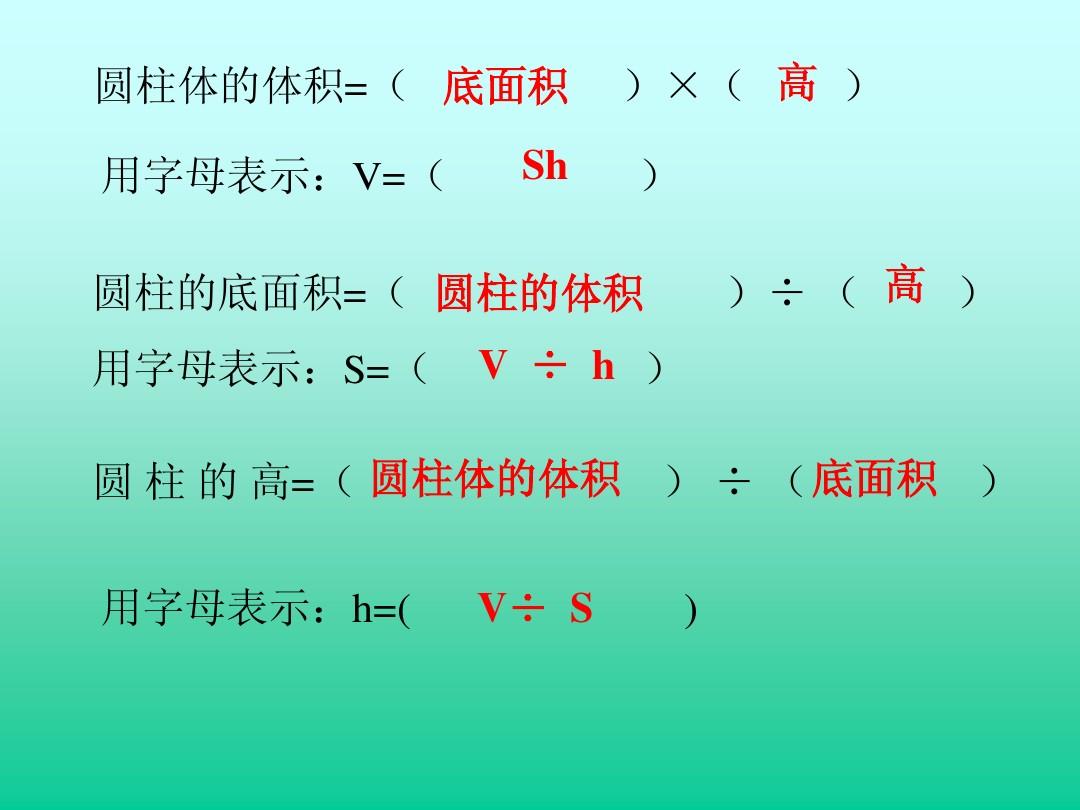 圆柱的体积=底面积×高