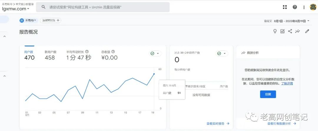 采用的谷歌Analytics分析,8月19日的日IP达到51了