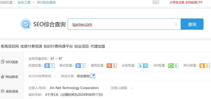 - 老高项目网的权重,8月19日在站长工具网已经是权1了
