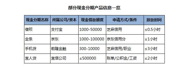 而最广为人知的,肯定蚂蚁金服旗下的借呗、马化腾微众银行的微粒贷、刘强东家的京东金条莫属了。。。