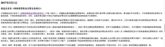 3月1日,银监会发布了《网络借贷资金存管业务指引》,对于这几百家良莠不齐的网贷平台,监管风暴将会烧至何方?