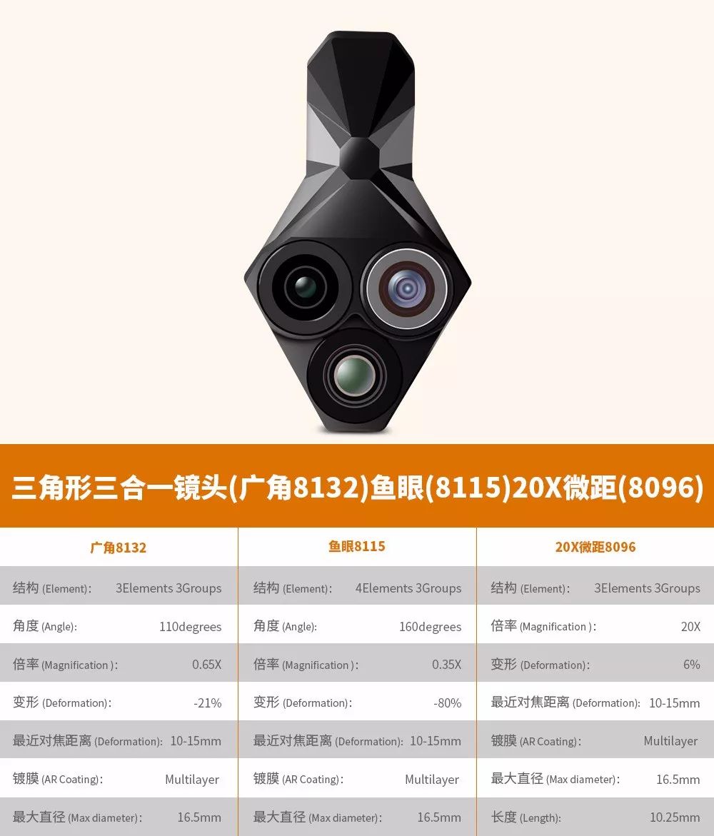 最好用的手机镜头三角形三合一,前后置手机通用镜头鱼眼+0.65X广角+20X微距摄像头