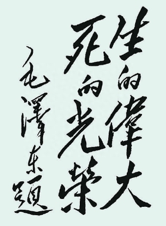 为刘胡兰题词(1957年)。释文:生的伟大,死的光荣。毛泽东题。
