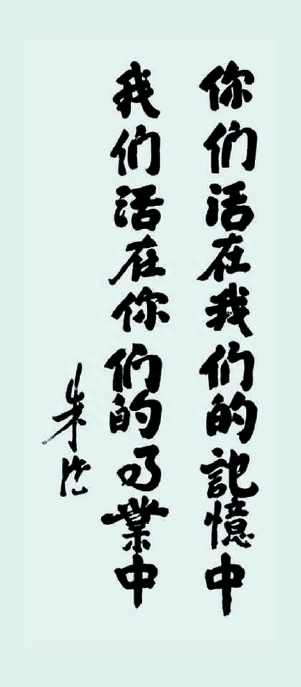 释文:你们活在我们的记忆中,我们活在你们的事业中。朱德。