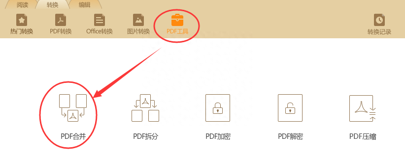 首先下载并打开极速玩转,选择上方工具栏“PDF工具”中的“PDF合并”。