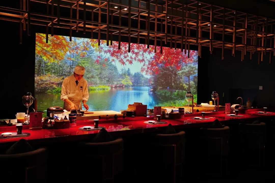 新店大门是通透的落地玻璃,门口隐约着和服女子身影。客近前,女子徐开门,欠身恭迎。一段红色的旋转阶梯格外醒目,一阶阶走上去的时候,像是某种跨入美食领域前的神秘仪式。