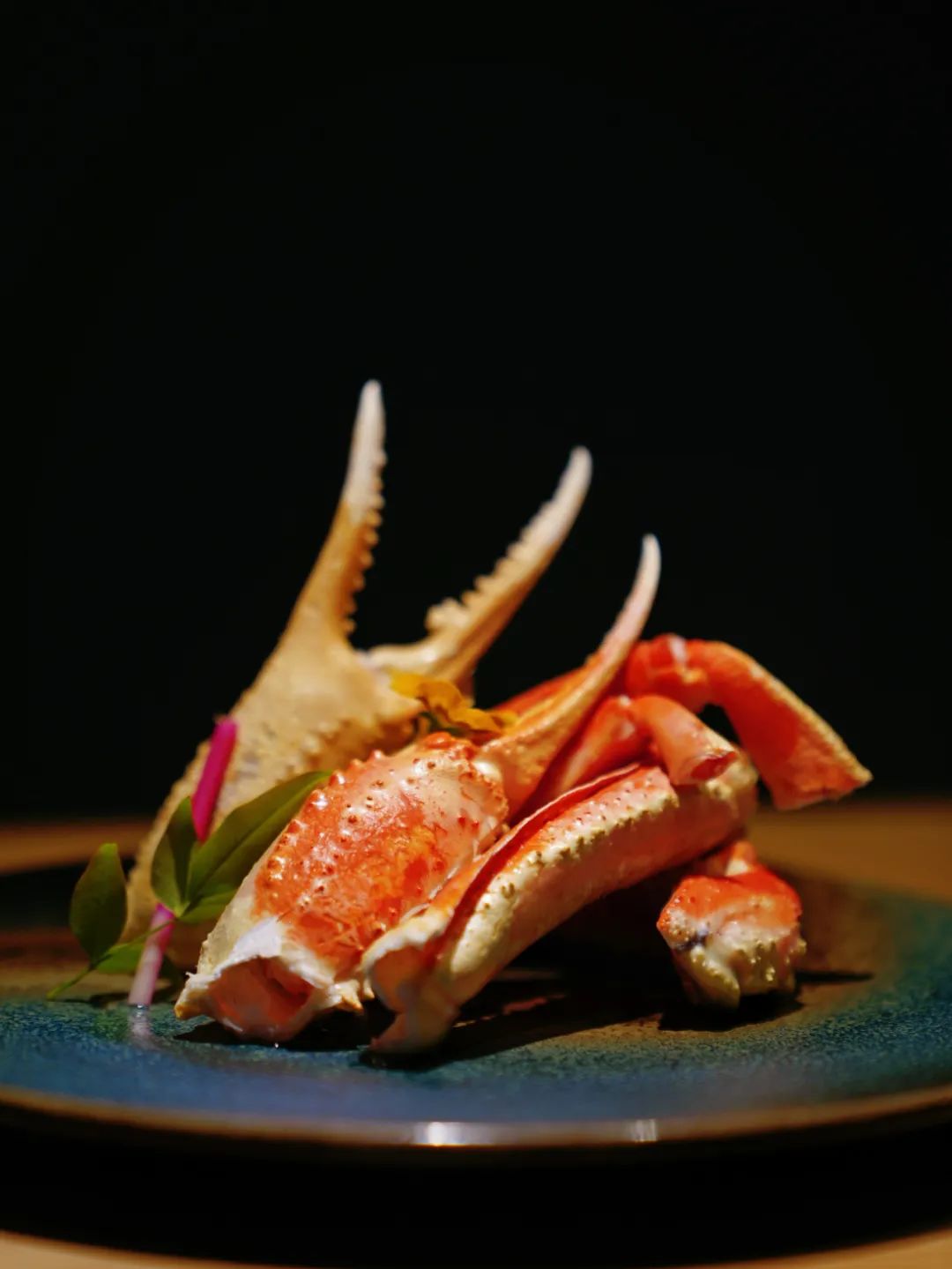 正式开餐前,店员会把松叶蟹拿来验明正身,鲜活的蟹优雅乖乖地躺在盘子里等待刀俎,一蟹N吃,好几道料理组成一餐蟹宴,以多种烹饪方式结合蟹的不同部位最大程度展现蟹之美。