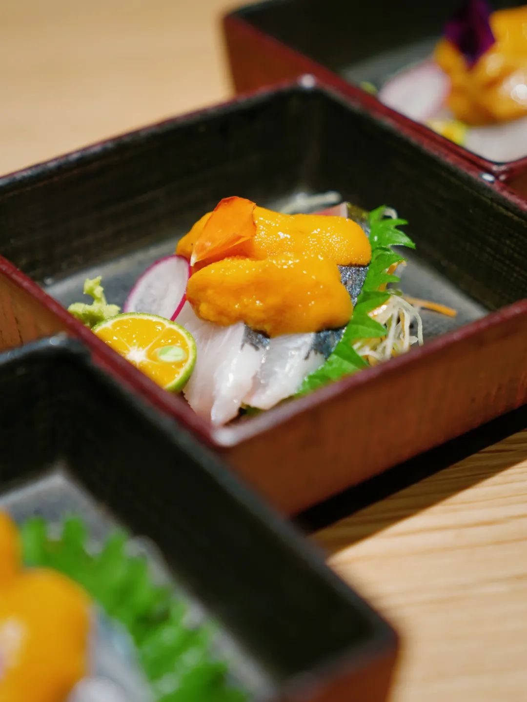 活海胆刺身,“海胆是最美味的舌头”,金黄的色彩极富视觉冲击,海鲜中新鲜海胆的颜色,就像生活中人民币的颜色一样具有吸引力,微弹是海胆最好的口感,证明其足够新鲜。所有海鲜中,海胆是我眼中“鲜”的极致。