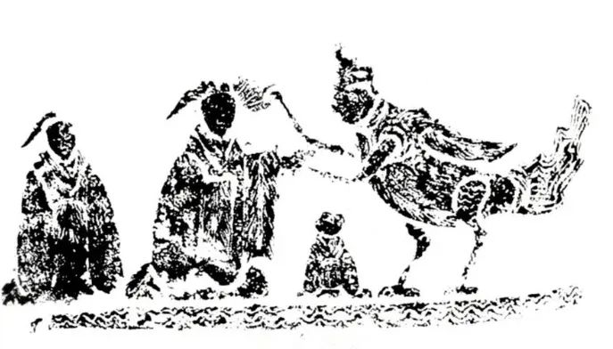 那么,黄帝时期的扁鹊是个什么样的形象呢?20世纪70年代,在山东省的两城山、宋山先后出土了几块汉《扁鹊针砭画像》石,这些画像石一端刻着一个半人半鸟的神物,头戴冠帻,双足有歧,拖着一束长尾;神物的对面是鱼贯而来的人群,均作披发跪坐的姿势;神物一手和为首的那人相握,一手则作扬举之状,或者是握着一短棒状物体。经考证,汉画像石上的神物正是黄帝时期的医药之神一一扁鹊,人们将他刻画成人首鸟身的模样,既反映了原始鸟图腾的崇拜意识,也说明扁鹊在人们心目中是一个神人,到后来就成为“神医”的代名词。