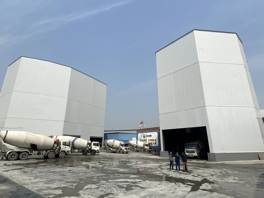 此次混凝土搅拌站升级改造既要围绕着工艺与设备、满足环保功能的改造,还要给混凝土搅拌站穿上“新衣”,即通过外观设计,为搅拌站增加一个封闭罩,在为它增加抑尘降噪功能的同时,把它打造成为一道城市靓丽风景线,一个与周边环境和谐统一的“城中工厂”。比如“越·现混凝土搅拌站”设计方案,“越”字寓意是越过城市原本的天际线,让混凝土搅拌站的设计与城市结合的同时,能够成为北京这个城市的一个景观雕塑、城市亮点;“现”字的寓意是当人们游走于周边道路时,该设计方案总能作为周边建筑的一个视觉焦点,突出可持续发展的理念。