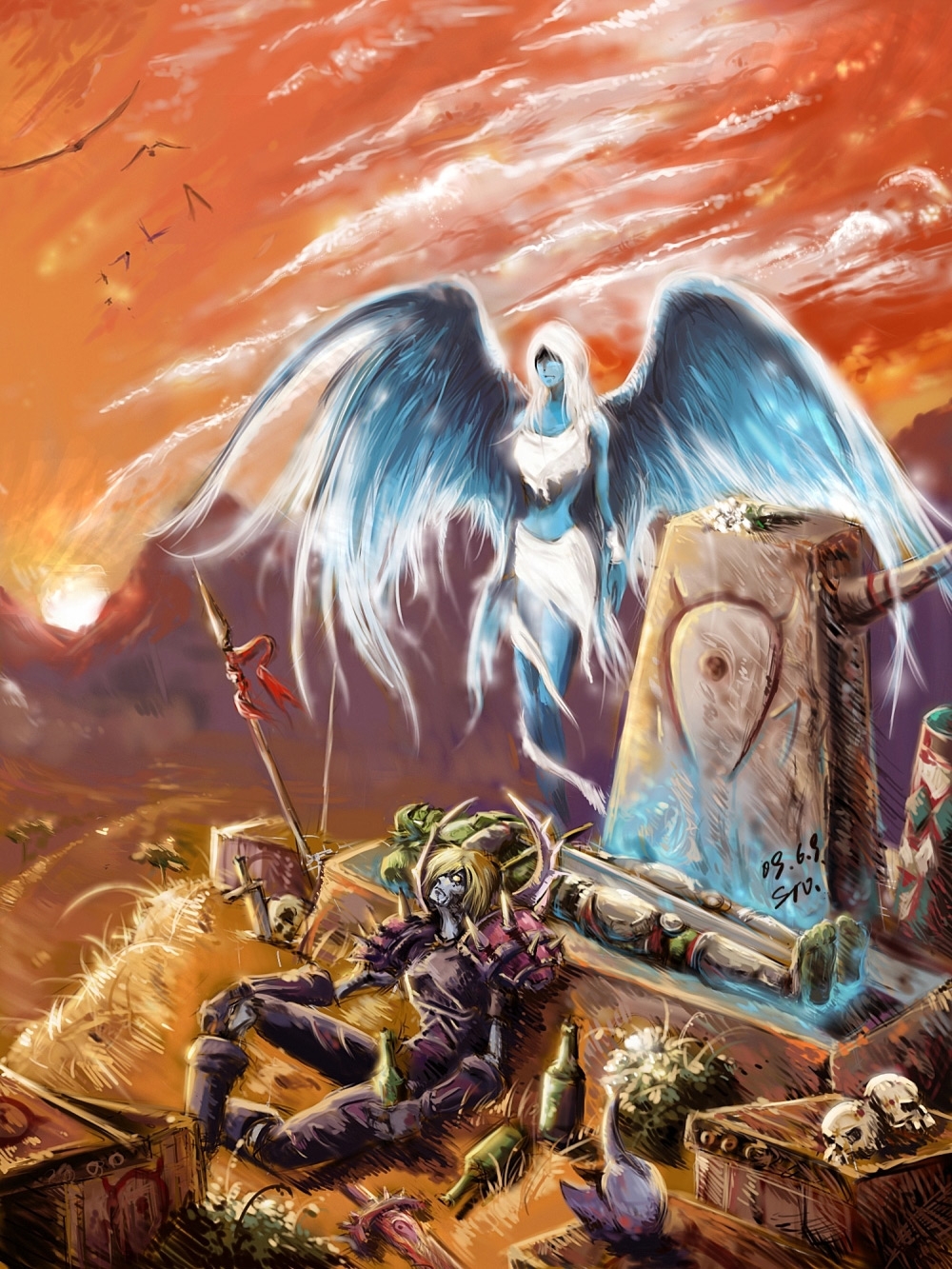 大家都知道,WOW里的“天使”只有在死亡状态下才能看到,但是在贫瘠之地靠近哀嚎洞穴的那座山上,有一个名叫战士之魂神殿的地方,那里有一个在普通状态下可见的天使(名字为“科尔特”),她守护着一位兽人战士的英灵。在她身后的石台上,躺着一个手握宝剑的兽人战士,散发着神秘的蓝光。