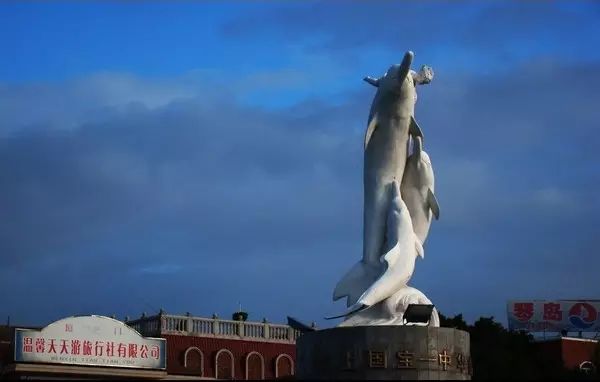 鼓浪屿钢琴码头的白海豚雕像。