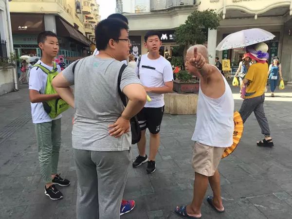 岛上的老人为游客指路。