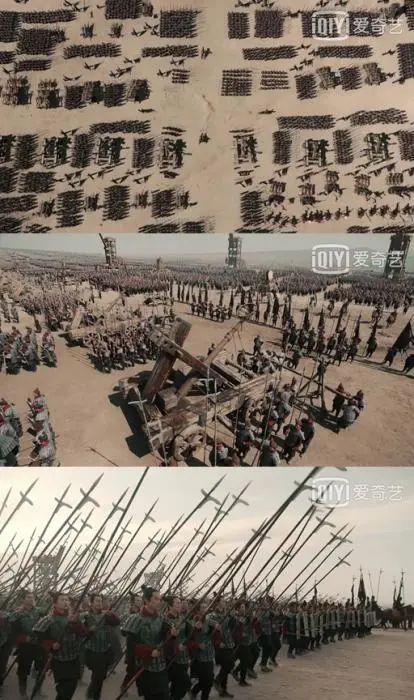 就拿常见的战争戏来说,很多古装剧要么一闪而过,要么讲求人海战术、充场面,战略战术都不大讲究。第一部的导演黄健中为《大秦帝国》系列打下一个基调,大场面必不可少,但要避免“万人大体操”,“战争戏的形式感不能太强”。