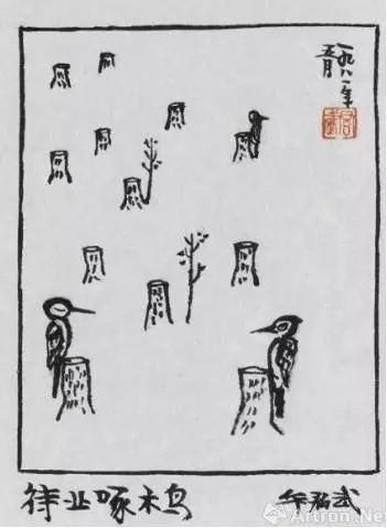 《待业啄木鸟》这副漫画是著名漫画家华君武先生的一副经典作品,是一副具有幽默性和强烈讽刺性的代表作。