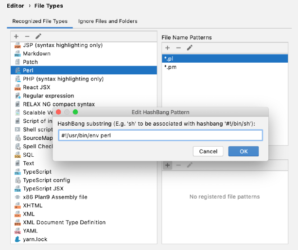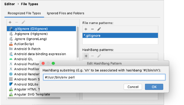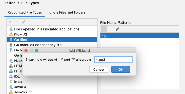 当您在编辑器中打开文件时,GoLand 会根据文件名模式选择文件类型和相应的语言服务。如果文件名与为文件类型注册的任何模式都不匹配,您可以将文件名模式与特定文件类型相关联。