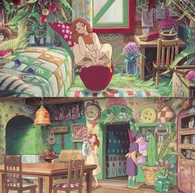 对于小人阿莉埃蒂来说,人类的世界显得过于庞大,在她身边,都是未知的植物与动物,那些普通人看似普通的花园,在阿莉埃蒂看来,都是充满乐趣的奇花异草!