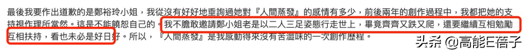 1988年,《人间蒸发》结集出书,甘国亮在这本书附上一篇后记,形容自己和郑裕玲的关系“老是以二人三足姿态行走在世上,齐齐又跌又爬,还要继续勉励互相扶持,看也未必是好日子”。