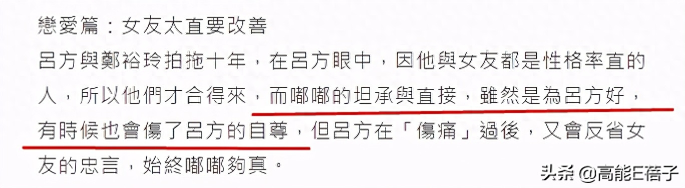 她曾为了吕方事业着想,要求他减肥以keep住艺人的身材,结果却只得到吕方的抱怨,说郑裕玲性格太直了,伤了他的自尊心。