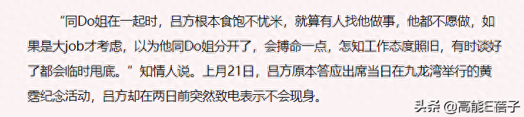 DoDo是拼命的“郑九组”,为了赚钱觉都可以不睡,但吕方根本“食饱不忧米,有人找他做事他都不愿做,大job才考虑”非常大牌。