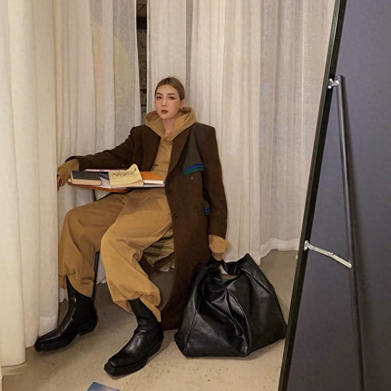 烟筒靴比之马丁靴更好搭配,不管是搭配大衣、西装还是裤子、裙子,都能很好消化,可帅气可甜酷。
