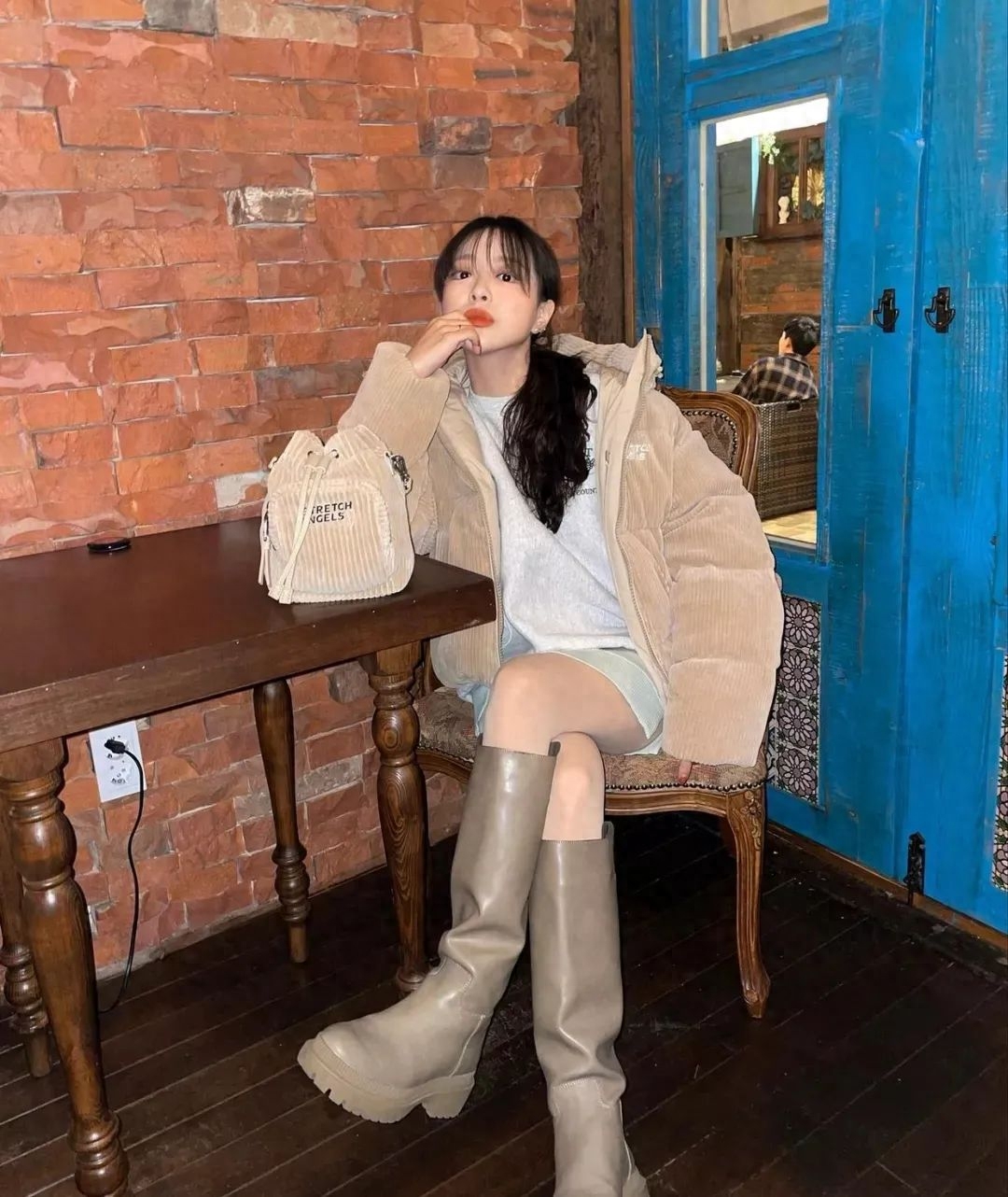 麂皮材质的长筒靴可以说是最常见的了,我也敲喜欢,百搭保暖又实穿,而且触感也很舒服。