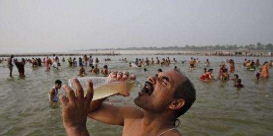 而你以为仅仅是这样的就完了吗?令人意想不到的是,污染成这个样子的恒河,竟然还能用来喝。没错不用多说,当然还是跟宗教有关。同样的恒河源头,许多印度教教徒认为,恒河水具有洗去自身的罪恶,去除百病的功效。他们眼中的恒河水,比任何特效药都管用。