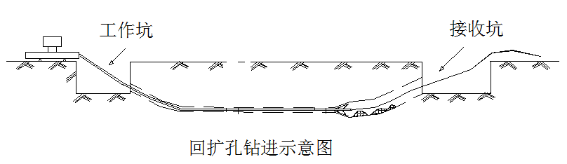 扩孔时地层土质较软时宜快速给进回扩,地层土质较硬时要匀速缓慢进行。回扩钻孔工艺见图示: