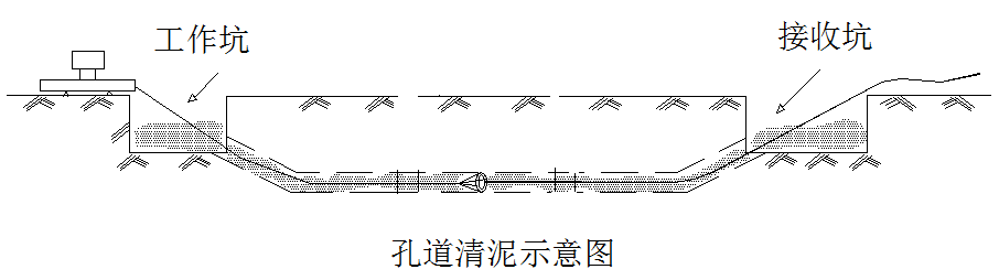 工作坑开挖尺寸为2.5m宽×4m长、接收坑尺寸为2.5m宽×4m长,工作坑、接收坑深度定为2.0—4.0m。为保证工作坑内干燥和扩孔施工,在工作坑、接收坑一侧设积泥坑,泥浆泵随时将多余泥浆抽出坑外,渣土车直接拉走。