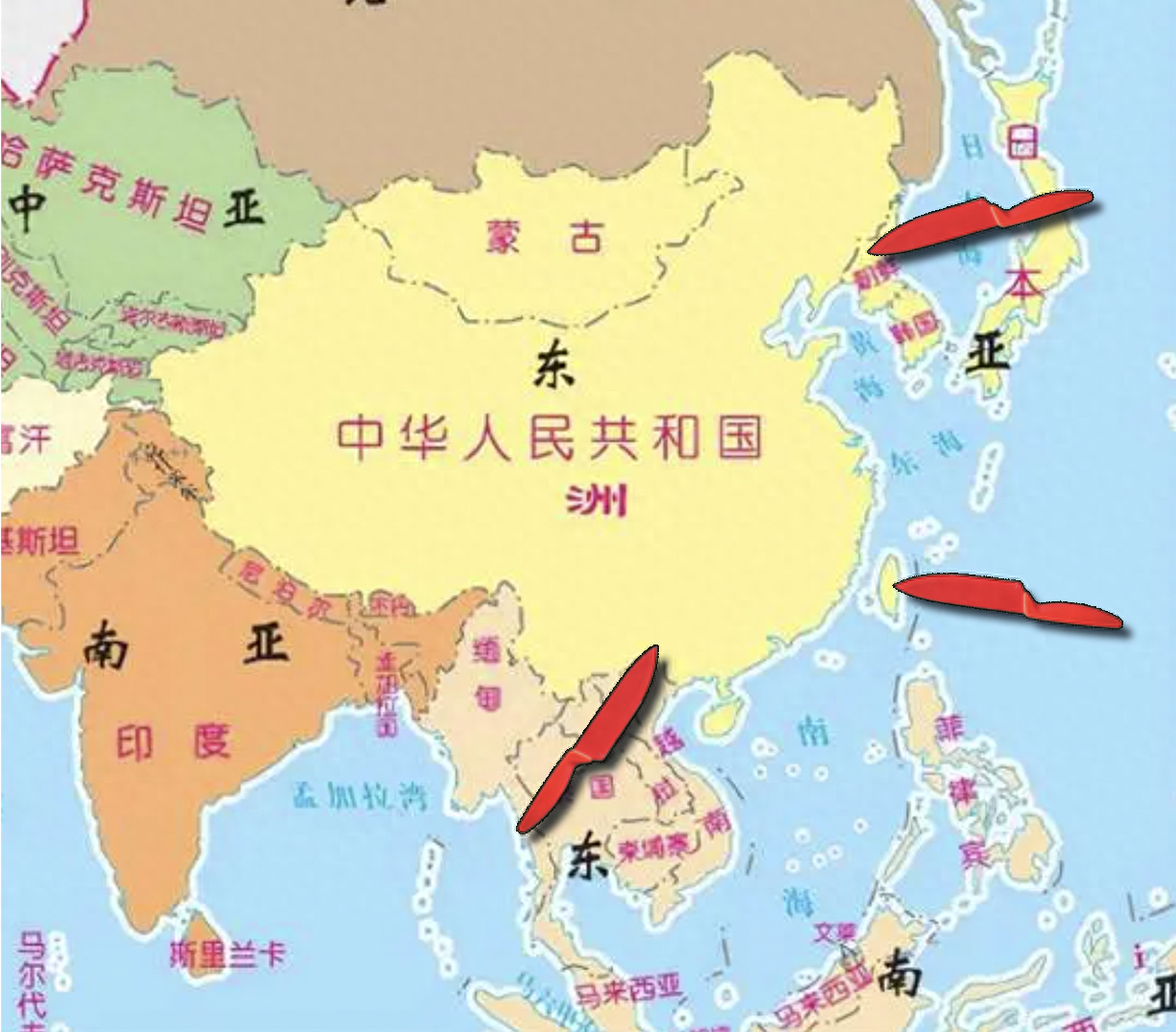 “美帝国主义要把三把尖刀插在我们的身上,从朝鲜一把刀插在我国的头上,以台湾一把刀插在我国的腰上,越南一把刀插在我们的脚上。天下有变,它就从三个方面向我们进攻,那我们就被动了。我们抗美援朝就是不许它的如意算盘得逞。”