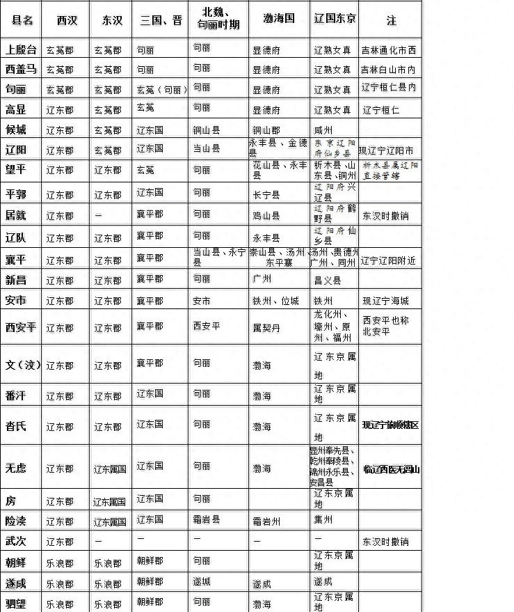 从以上变迁看,西汉时所设立的各县在不同历史时期归属不同。且玄菟、辽东、乐浪、朝鲜、襄平、句丽地等,都是紧密相连、互相联结的。