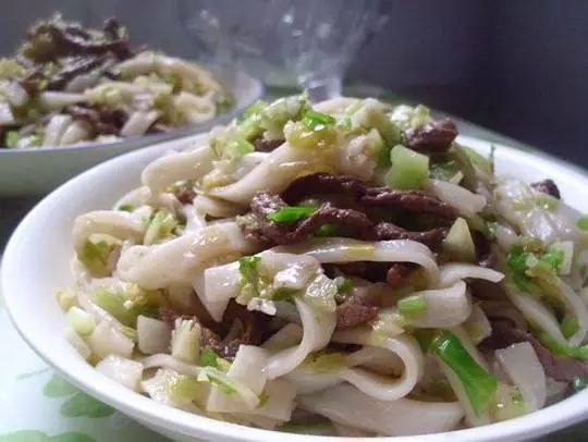 大师傅抖一把干面,洒进面锅;面条下进滚水,翻滚几遭便捞出沥水,捞进已经放好卤汁的面碗,洒上几片猪肉和葱花,上桌。