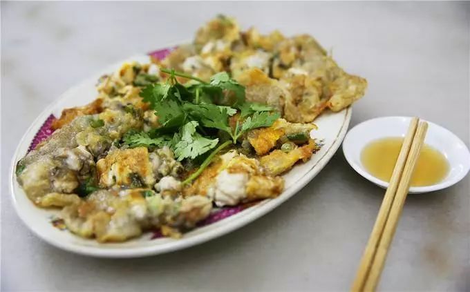 取起蘸鱼露吃,蚝烙中海鲜的鲜甜随即在舌尖上蔓延开来,让人忍不住继续开动筷子。