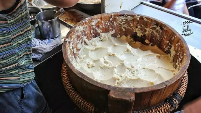 老板用利落的手法盛到瓷碗里,撒上黑糖、白糖或芝麻糖,如富士山一般的豆花就出现在眼前。送入嘴里,这浓浓的豆香味,马上就在口中四散开来,芝麻糖的味道也十分浓,但和豆香味并不相冲,两者的化学反应,产生出甜到入心头的奇妙味道。