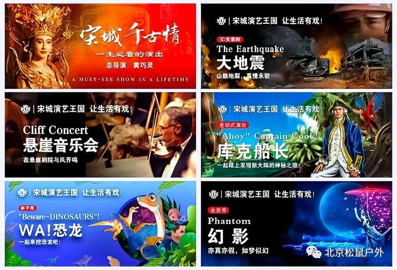 还有《大地震》《幻影》《WA!恐龙》《库克船长》《上甘岭》《燕青打擂》《铡美案》《抛绣球》《锅庄》《快闪》等百场演艺秀,穿越古今中外,总有一款适合你。