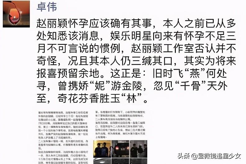 按照怀胎十月的时间推算,卓伟作诗的时候赵丽颖肚子里指定是有宝宝的。