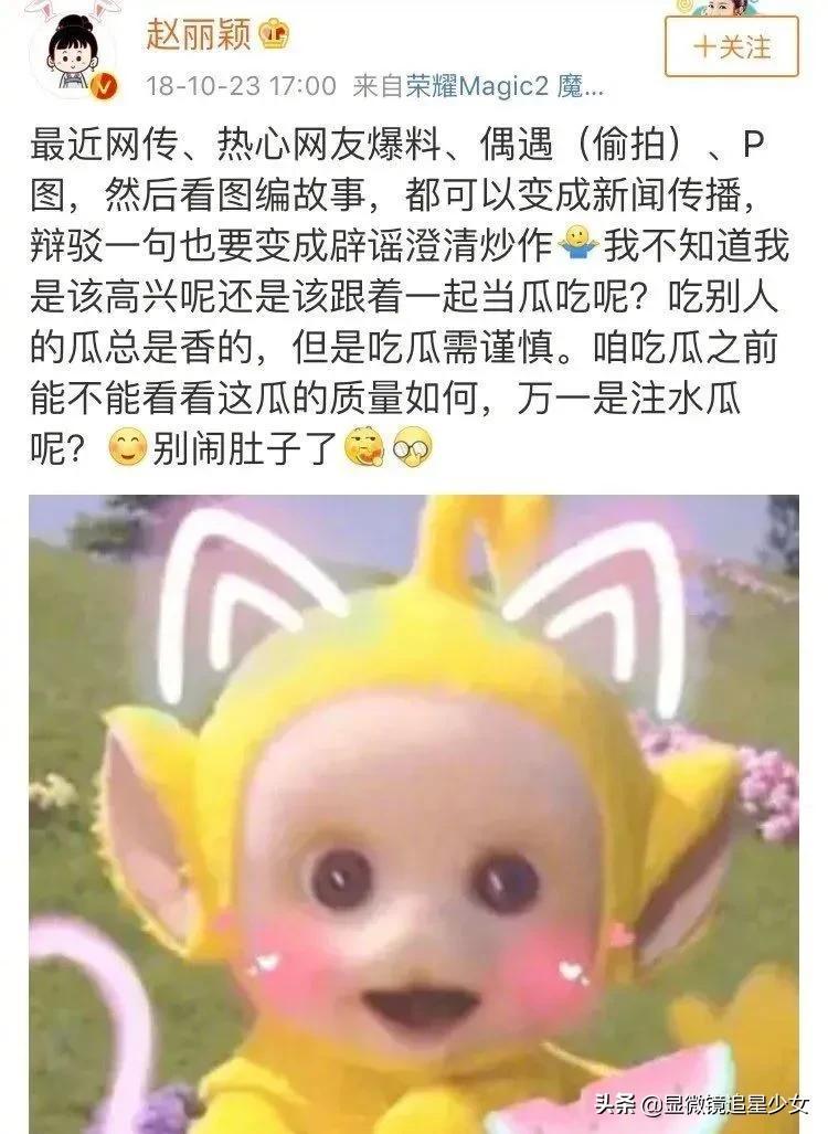 为了澄清怀孕,赵丽颖发微博劈了个叉。